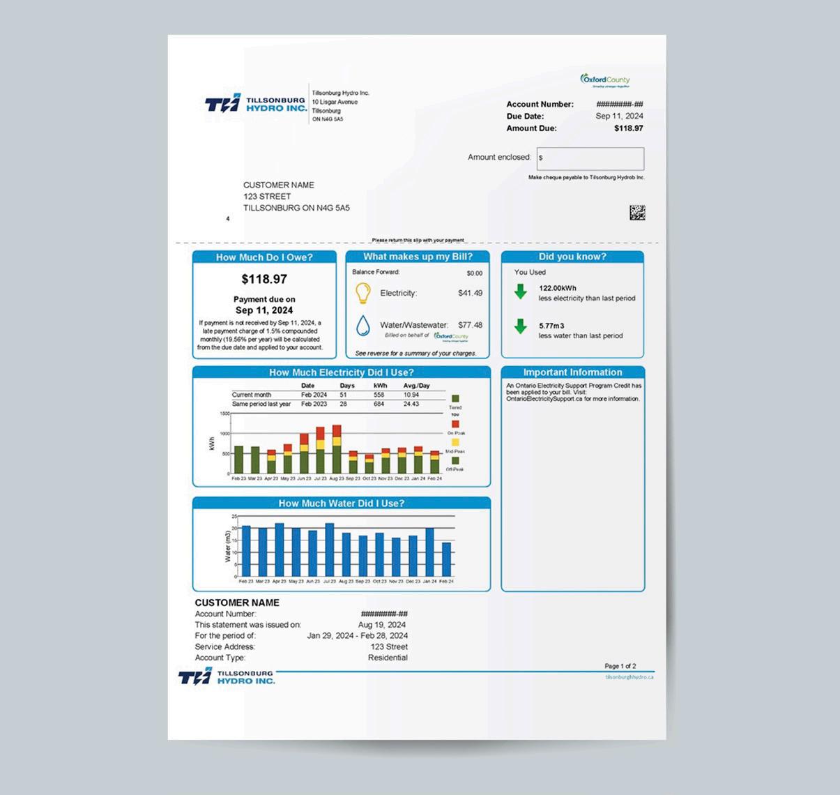 The new bill format from Tillsonburg Hydro is more than just a redesign; it’s a significant step towards modernizing utility services to improve convenience, accuracy, and overall customer satisfaction. Customers will experience a more streamlined and informative billing process.