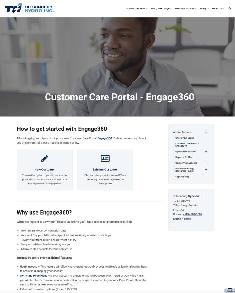 Tillsonburg Hydro will also be introducing a new customer portal with Engage360. With Engage360, customers will access this portal using virtually any electronic device, including a smartphone. With many self-serve features, such as switching price plans and registering new accounts, customers will be able to better monitor usage and make decisions to reduce electricity consumption and save money.