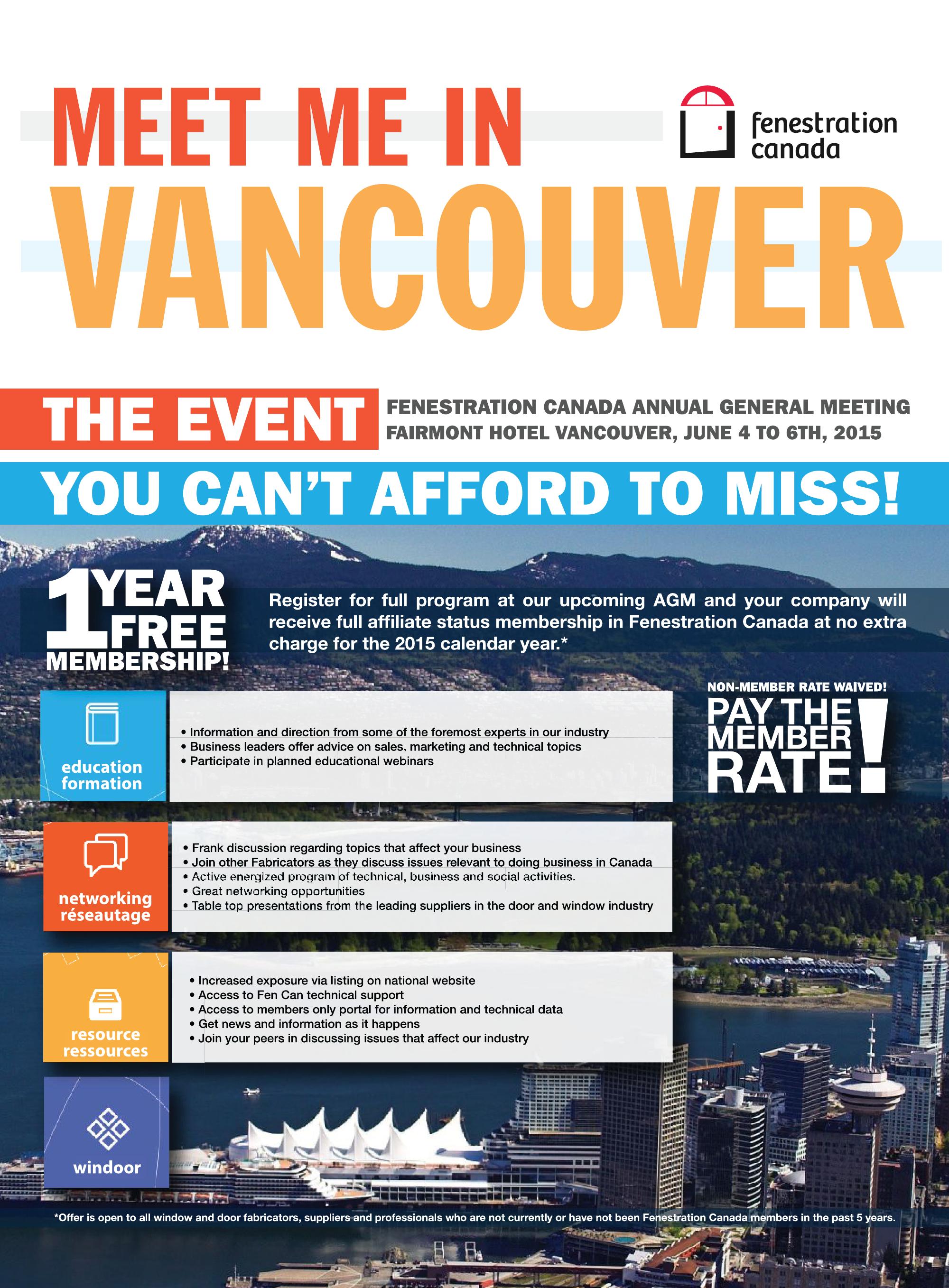 Our spring edition of once again focuses on technology with a look at 3D printing, an idea that has been around for a few decades, but is showing new potential due to the exponential increases in computer processing power we now have. And we go inside Spectrum Skyworks, a Vancouver company that has done some incredible work on those windows that look straight up. You’ll find the Fenestration Canada 2015 Members Directory inside as well. It is a great resource for looking up your colleagues in the window and door industry across the country, and for finding suppliers who have demonstrated their commitment to Canadian fenestration.