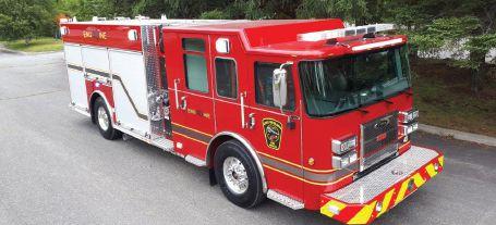 This custom pumper rescue was manufactured a Spartan Gladiator chassis with a Cummins L9 450HP engine powered by an Allison 3000 EVS transmission. Featuring a Waterous CSUC20 pump with a flow of 1,500 IGPM and water tank capacity of 750 IG, plus a FoamPro 2001 with a capacity of 30 IG. It also features stainless steel plumbing, custom CoPoly storage systems, in-cab EMS cabinet, and more.