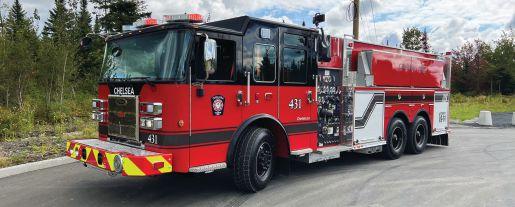 Built a Spartan Metro Star chassis with a Cummins L9 450HP engine powered by an Allison 3000 EVS transmission. The pumper comes equipped with a Waterous CSUC20C pump with a flow of 1,750 IGPM, water tank capacity of 1,000 Imperial Gallons, and FoamPro 2001 30 IMP gallon foam tank, Waterous 140-SP CAF System and Elkhart Auto Tank Fill.