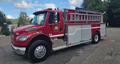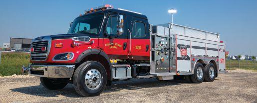 Built on a Freightliner M2 chassis with a Cummins L9 350HP engine powered by an Allison 3000 EVS transmission. Featuring a Hale AP50 pump with a flow of 420 IGPM and water tank capacity of 1,7000 Imperial Gallons, stainless-steel Newton electric dump valve with swivel and Fireman’s Friend direct tank fill features.