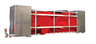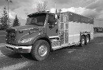 This Rosenbauer America tanker was built on a Freightliner M2-112 chassis that includes a Cummins 450HP engine, Darley HM 500 USGPM pump, FRC pressure governor and tank gauges, Rosenbauer FX 1/8” aluminum body, Whelen Ion-Series red and blue warning lights and M-Series scene lights, A.H. Stock electric dump valve, and enclosed portable tank and suction hose storage.