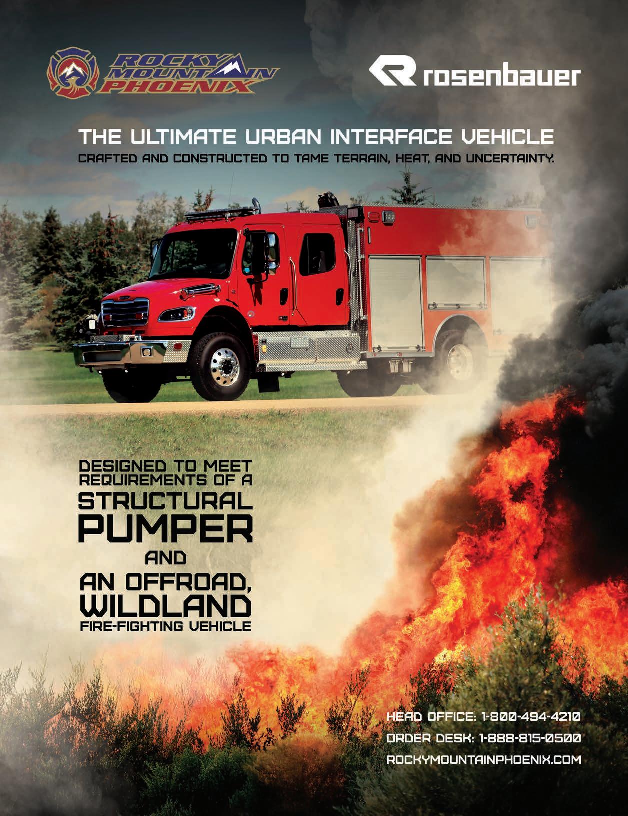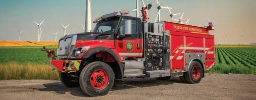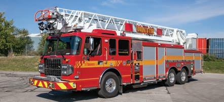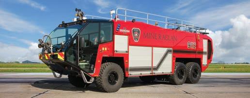 Built on a Rosenbauer PANTHER 6x6 chassis and powered by a 700 HP Volvo Penta D-16 engine, the PANTHER boasts a Rosenbauer N80 2100 GPM pump, 3170 G water tank, 400 G foam tank, Rosenbauer RM35 1200 GPM high-volume lowaltitude (HVLA) bumper turret, and a Rosenbauer RM35 1200 GPM air-aspirated roof turret.