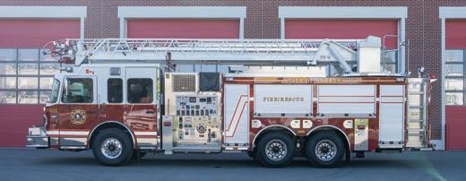 These 6 Smeal 32M/105‘ aerials built on a Spartan Gladiator MFD flat roof chassis and powered by Cummins X15 565 HP engines with Allison 400 EVS transmission, each features Darley EM pump, a flow of 1,500 IGPM/6,000 LPM, and a 420/ IMP G/1,600 L water tank and are equipped with ECO IDLE-TEC (idle reduction technology), lowering costs with reduced fuel consumption and engine wear.