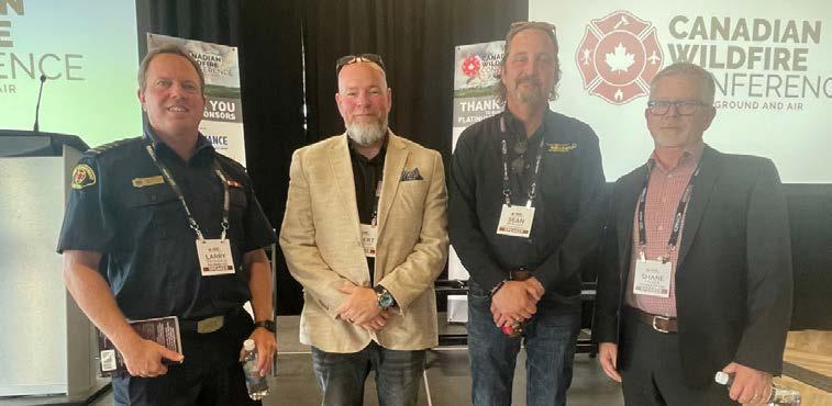 a panel discussion about the future of wildfire suppression, anchored by three provincial fire agency leaders in J.J. Lum, aviation specialist, BC Wildfire Service; Peter Murray, air attack officer and FBAN, New Brunswick Wildfire Management; and Ben Jamieson, provincial wildfire operations coordinator and RPFT, forest operations branch, Alberta Forestry & Parks. Mike Larsson, fire chief for Penticton, and Travis Mizera, general manager of Airborne Energy Solutions, rounded out the panel focused on tech and strategies around issues like initial attack, mitigation, structure protection, training, command and control.