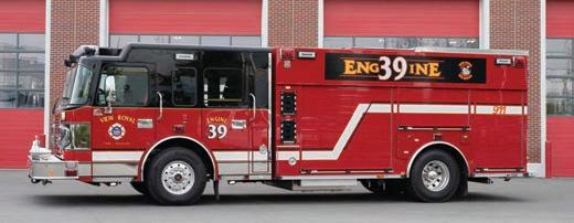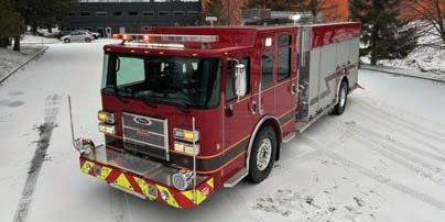 Built on a Rosenbauer General custom cab and chassis featuring a 400 HP Cummins L9 engine, the Rosenbauer FX formed body houses a Waterous CX 1500 GPM pump and 1000 G water tank.