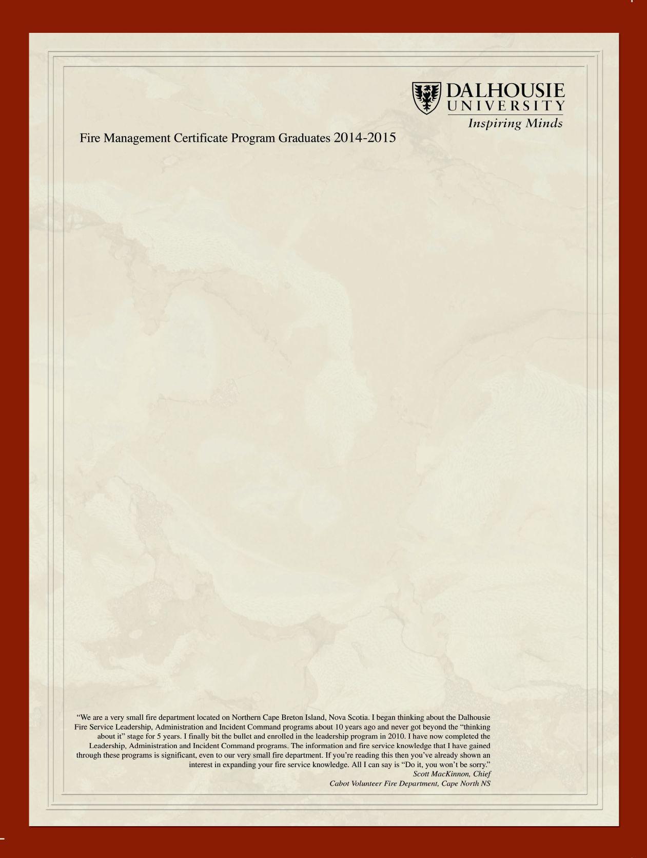 University, Western Oregon State College and the University of Saskatchewan, and was involved with the Saskatchewan Association of Fire Chiefs.