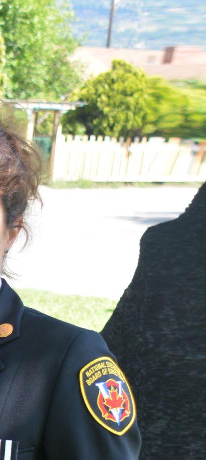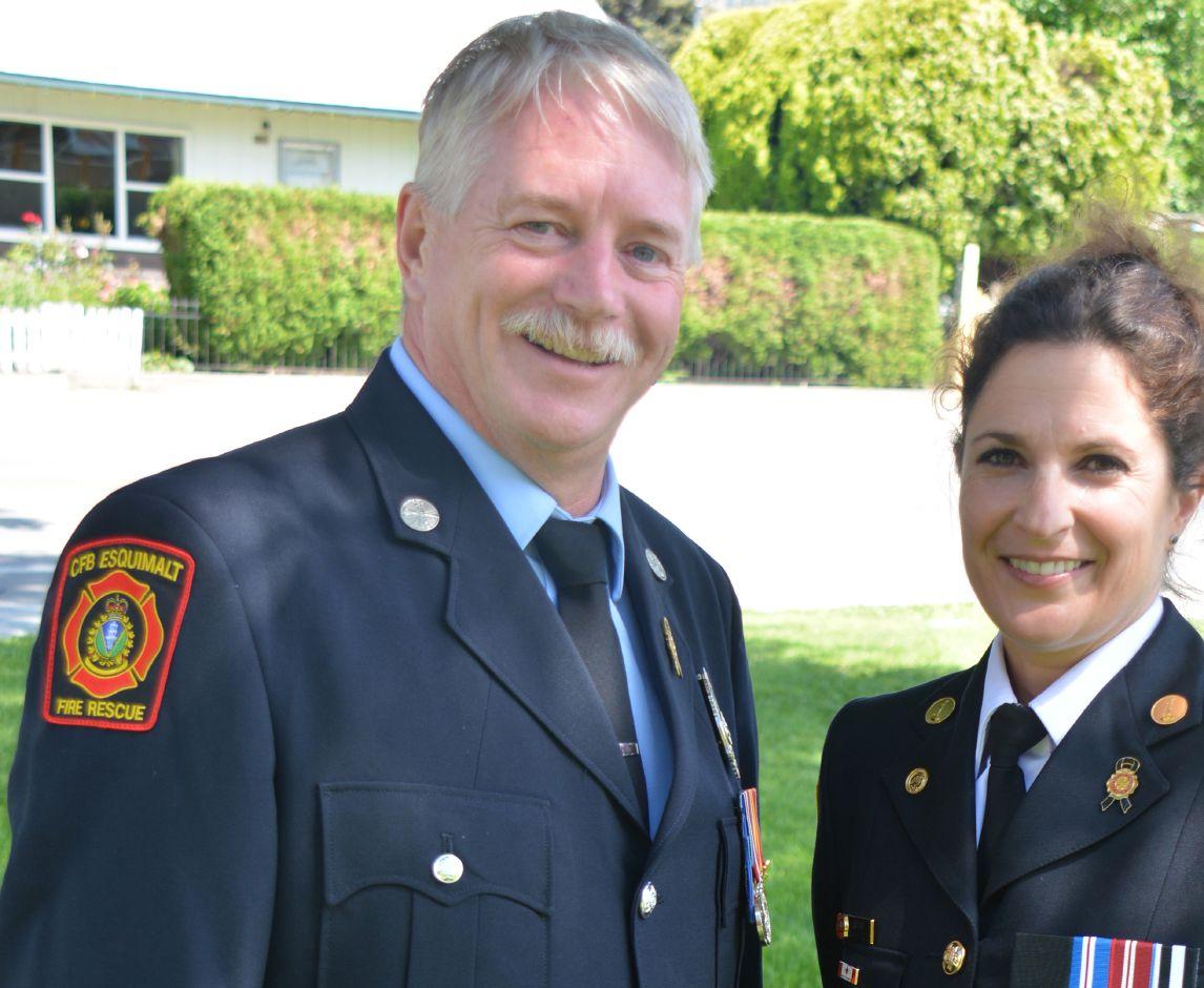 Firefighters Nathalie Michaud and Wayne Jasper following their presentation in Summerside, P.E.I., in July. See story page 10.