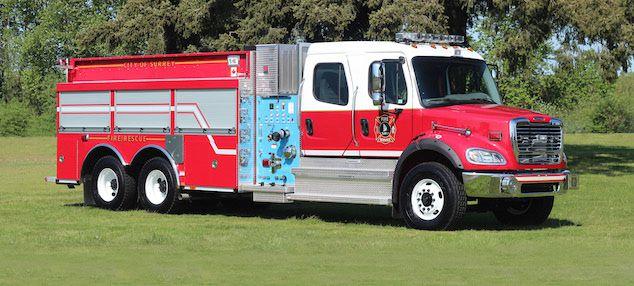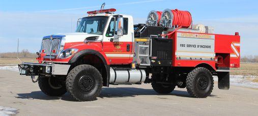 Canadian Forces Base Borden in Ontario took delivery in March of a Fort Garry Fire Trucks-built range firefighter vehicle. Built on an International 4x4 chassis and powered by a 330-hp MaxxForce 9 engine and an Allison 3000 EVS transmission, the unit is equipped with a Waterous CPD-2 pump and Aquis CAFS, a 1,000-gallon tank, a Federal Signal backup camera system, Amdor ground lighting, Newton 10-inch quick dumps and two Hanny aluminum hose reels.