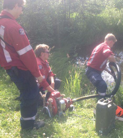 On the way to this fire we drove through the wildland fire to get to cabins while the ESRD wildland firefighters were doing structure protection on remote sites to the north. Eventually we also worked together to sprinkler a camp, and as per our unusual bad luck, a helicopter crashed close by while we were on site. (The pilot was saved by another pilot and engineer; he had a concussion and broken jaw but, fortunately, survived the experience.)