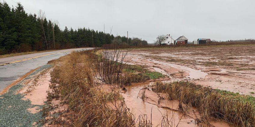 ABOVE Erosion on a field in Nova Scotia two days after hurricane Fiona, Sept. 25, 2022.