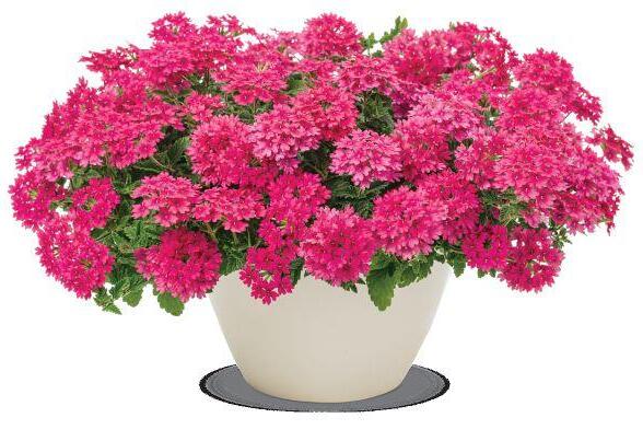 A stunning series from Dümmen Orange with lots of flowerpower that grows in a perfect round habit. Recommended for patio containers and hanging backets. Full sun to part sun. 20-40 cm tall, 30-40 cm wide. dummenorange.com