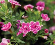 deadheading. With flowers that look like roses, Doublette Love Swept is a novel look for calibrachoa, bearing fully double, hot pink flowers with pure white picotee edges outlining every petal. 15-30 cm tall x 3060 cm wide. Part sun to sun. provenwinners.com
