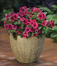 This tightly compact calibrachoa is ideal for smaller scale plantings— think petite mono pots, window boxes, and porch rail planters. Won’t grow out of bounds through the season and will remain full of flowers from spring through fall without