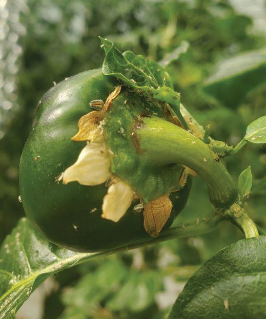 leaves similar to Western Flower Thrips (WFT), T. parvispinus also inflicts characteristic damage to growing points, causing stunted growth. Heavy infestations cause damage in the young leaves, which sometimes resembles broad mite damage. Damaged fruits may subsequently stick to leaves and exhibit brownish, and sometimes wet, spots,” reports Koen Merkus, IPM and Pollination Specialist at Biobest in HortiDaily.3 The emergence of new pests and diseases is not because a brandnew species of insect, virus or fungal pathogen is suddenly created, of course. But for whatever reason, the causal organism finds opportunity to gain a foothold where not seen before. So, what do we do about such new troubles? There are several strategies to consider for dealing with any or all of these new pests/pathogens: