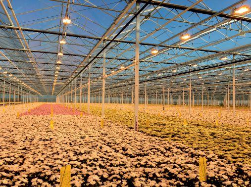 Night interruption lighting is recommended in propagation for any mum crop throughout the entire year. It is generally easy to set up when the plant density is high and the total space