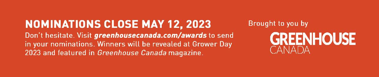 Nominations close May 12, 2023. To nominate someone, visit: www.greenhousecanada.com/goty/ nomination-form.