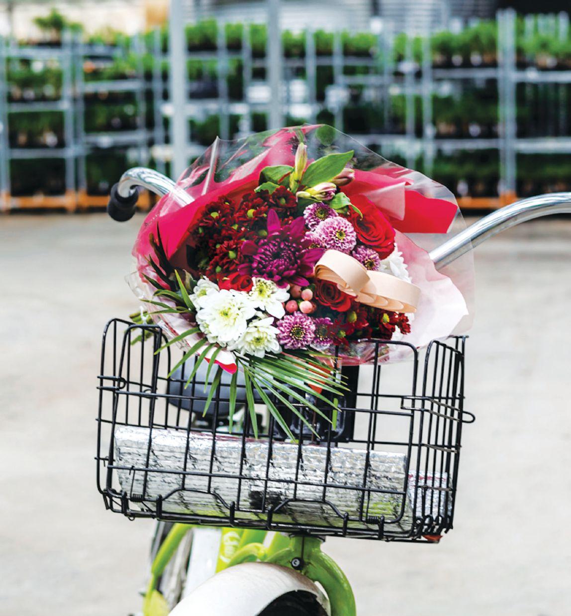 A seasonal bouquet of Canadian-grown mums adorns a bicycle at Rainbow Greenhouses in Chilliwack, B.C. Read more on Page 8. Photo by Rainbow Greenhouses
