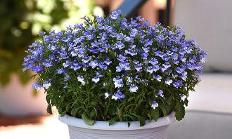 Gardeners will enjoy the unique splash pattern found all over these frothy blue lobelia blooms, and how the flowers hold even in Summer conditions. Plants are upright and compact with dense branches for super-attractive baskets. Magadi Compact is an early-flowering series from Selecta One with a lowmedium vigor and very good heat tolerance. The new Blue Bay variety is ready for early Spring sales in 2023. It joins other colors in this series: Blue, Dark Blue, White, Purple, and Blue+Eye. Selecta One www.selectanorthamerica.com