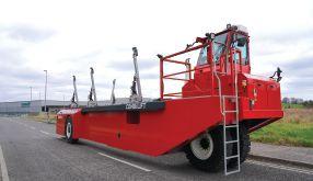 of both the load and direction of travel, ensuring enhanced safety and precision. Adjustable sliding load supports along the chassis accommodate various load lengths and heights during travel. The pivoting front dual-wheel configuration eliminates the need for suspension, optimises stability and gives a tighter turning circle. With a 300-millimeter ground clearance the SPI is designed for both concrete and gravel yards, offering reliability across diverse work environments. It’s available in electric power with an interchangeable battery system, diesel and LPG, catering to different operational needs. The large solid tires enhance durability and reduce yard maintenance. The short chassis enhances load support with a low centre of gravity and offers more manoeuvrability, especially while operating within production facilities. The Self-Propelled Inloader aims to transform yard-based logistics by eliminating the reliance on multiple trailers and shunters, significantly enhancing efficiency and reducing operational costs for businesses handling oversized, high loads.