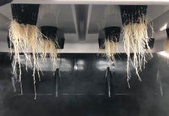 most from dissolved oxygen. The photos below are from Choice Growers in Strathmore, Alberta, which uses an aeroponic system. The roots are directly misted with oxygenated water.