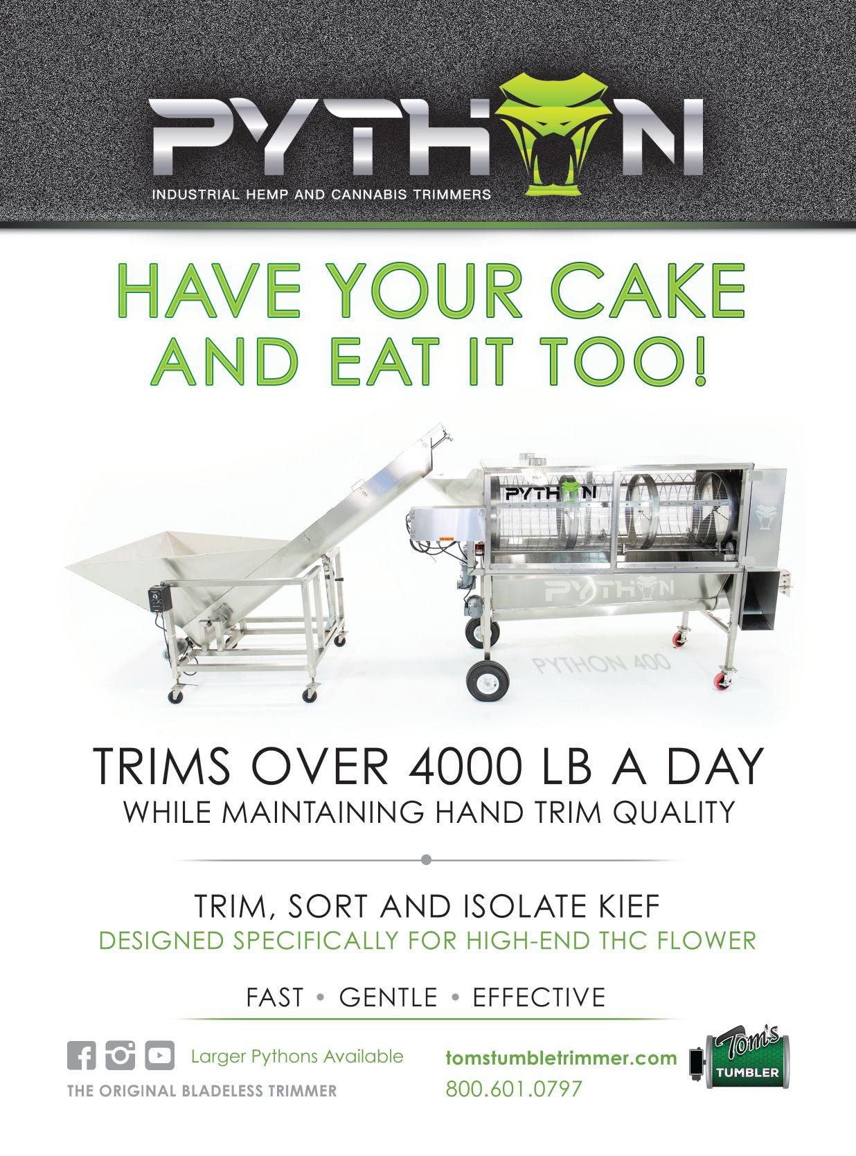 The quick-removal tumbler design makes it simple to clean and maintain. It also allows you to fit the Batch One through most standard 32-34” doors. The bins used to capture the trim are foodgrade, stackable and nestable for storage. www.twistertrimmer.com