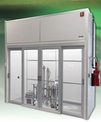 The floor-mounted, walk-in fume hoods range from six feet to 24 feet wide, four feet to eight feet deep and seven feet to 16 feet high. Botanical extractions, tall apparatus/distillation processes, roll-in reactors or long-integrated instrumentation systems can be easily accommodated in these hoods.