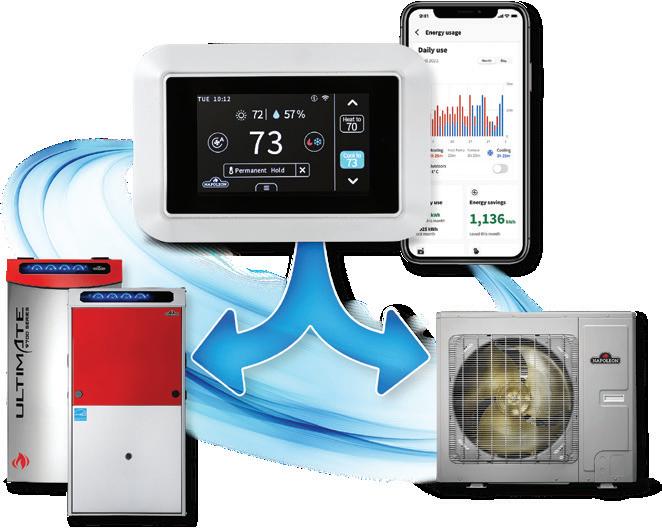 An advanced hybrid heating system from Napoleon automatically switches between two heat sources to maximize performance and protect the compressor. It’s versatile two stage support integrates furnaces, boilers, air handlers or heat pumps and works with all major fuel types. It selects the lowest-cost source, cuts heating costs up to 50%, lowers emissions, supports 10 wireless sensors, and qualifies for rebates.