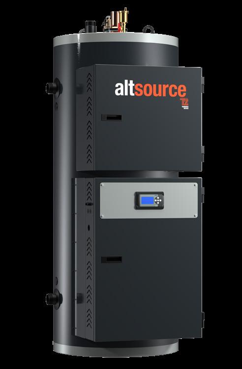 AltSource-120 from Thermo 2000 is designed for commercial applications as a high-volume electric boiler to complement any renewable heat source. It acts as a secondary energy source supporting primary systems. The unit can also be equipped with a copper-coil heat exchanger for DHW.