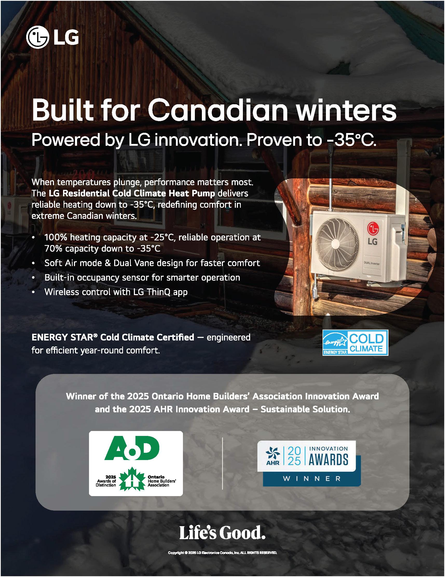 The Orion XLTH+ (extra low temperature heating plus), by General HVAC Solutions America is an R-32 cold-climate mini-split system that ensures indoor comfort even at outdoor temperatures as low as -30C (22F) while maintaining high efficiency with a 33.5 SEER2 rating. It maintains full rated heating capacity at -26C (-15F) and 90% rated capacity at -30C (-22F).