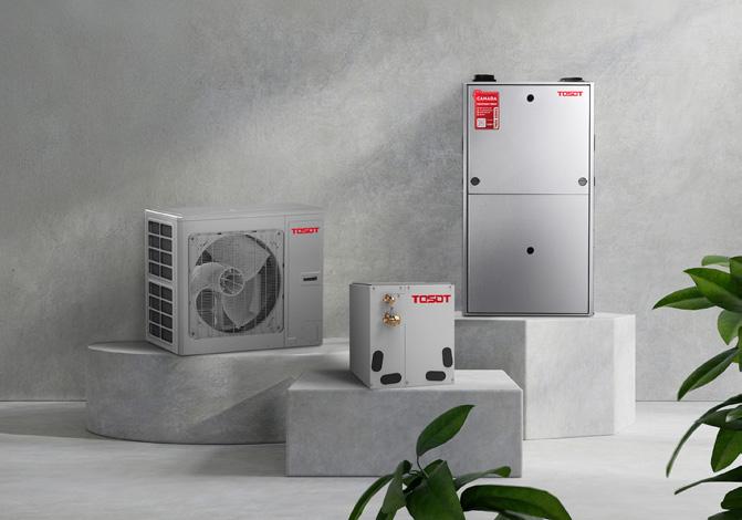 TOSOT will feature its dual fuel system delivering intelligent performance through a two-stage gas heating furnace paired with a variable-speed ECM motor for smooth, energyefficient operation. Its multi-directional furnace design offers installation flexibility, while 24V AC compatibility ensures integration with standard controls.