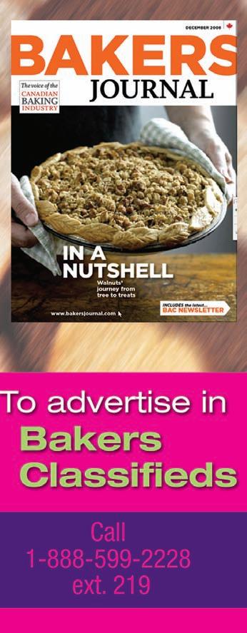 Send your subscription request to: bakers Journal P.o box 530, simcoe, oN N3y 4N5 tel: 1-866-790-6070 ext. 206 Fax: 1-877-624-1940