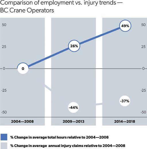 “Looking at these comparisons, although independent efforts within these sectors to reduce injury claims have had success, we can clearly also conclude that the general reduction of crane-related injuries had much to do with B.C.’s mandatory crane operator certification program,” Connell says.
