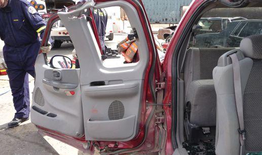 Often, rescuers’ approach to a typical side-impact crash is to create a purchase point on the latch side of the front door, near the handle,