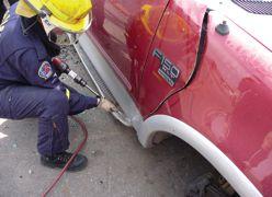 If space permits, insert a hydraulic cutter and sever the latch and any torn sheet metal. Once this last cut is made, the whole front and rear door assembly is ready to be opened up via the rear hinges – just like a gate – to give complete access to front and rear passengers (see photo 8).