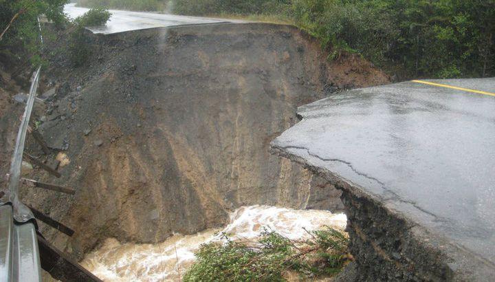 Above: Roads in several Newfoundland communities, including this one in Port Rexton, were washed out by the force of the water rising around them during Hurricane Igor in September.