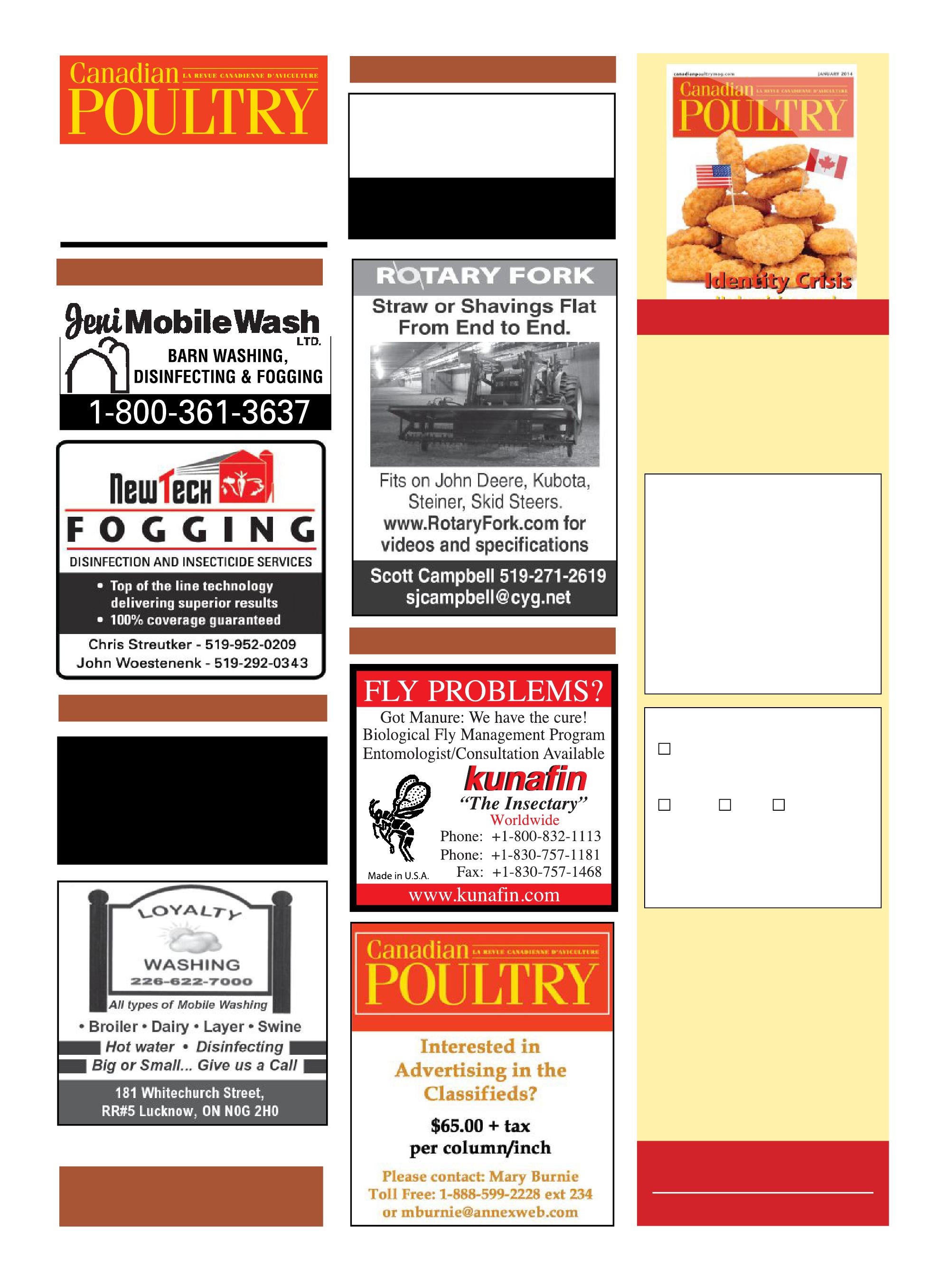 e-mail: subscribe@canadianpoultrymag.com Tel: 866-790-6070 ext 201 Fax: 877-624-1940
