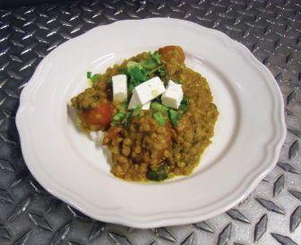 6. Once the lentils are tender, stir in spinach leaves, cooked paneer, and season to taste with salt and pepper. Garnish with cilantro leaves and serve with Roti or basmati rice.