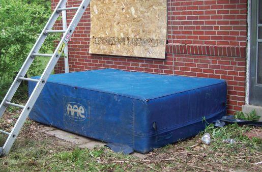 If you are going to train for this, or practice this technique, some prep work will be needed. In the photo, you will see a track and field mat being used. A pole vaulting or high jump mat will work best as it will have enough cushion to reduce the injury or contact with a solid surface like the ground.