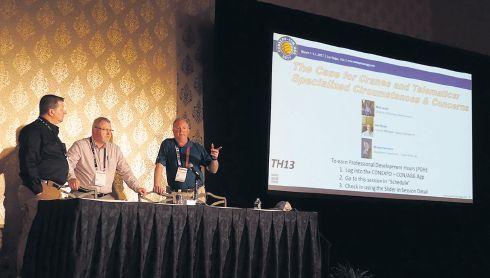 Tony Niese of Nelson Manufacturing Company offers advice on safely using boom dollies at the 2016 annual conference of the Crane Rental Association held in Calgary.