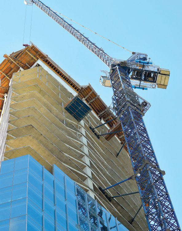 izations required due to sequencing. Hodges Erectors used a tower crane for unloading and erection for about half of the project, but had to bring in a 450-ton mobile crane, properly shored, to set up on a parking garage to complete the job.