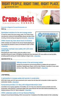 Good luck to all the nominees for this year’s program. We look forward to featuring the industry’s best and brightest upand-comers in the November/December 2021 issue of Crane & Hoist Canada!
