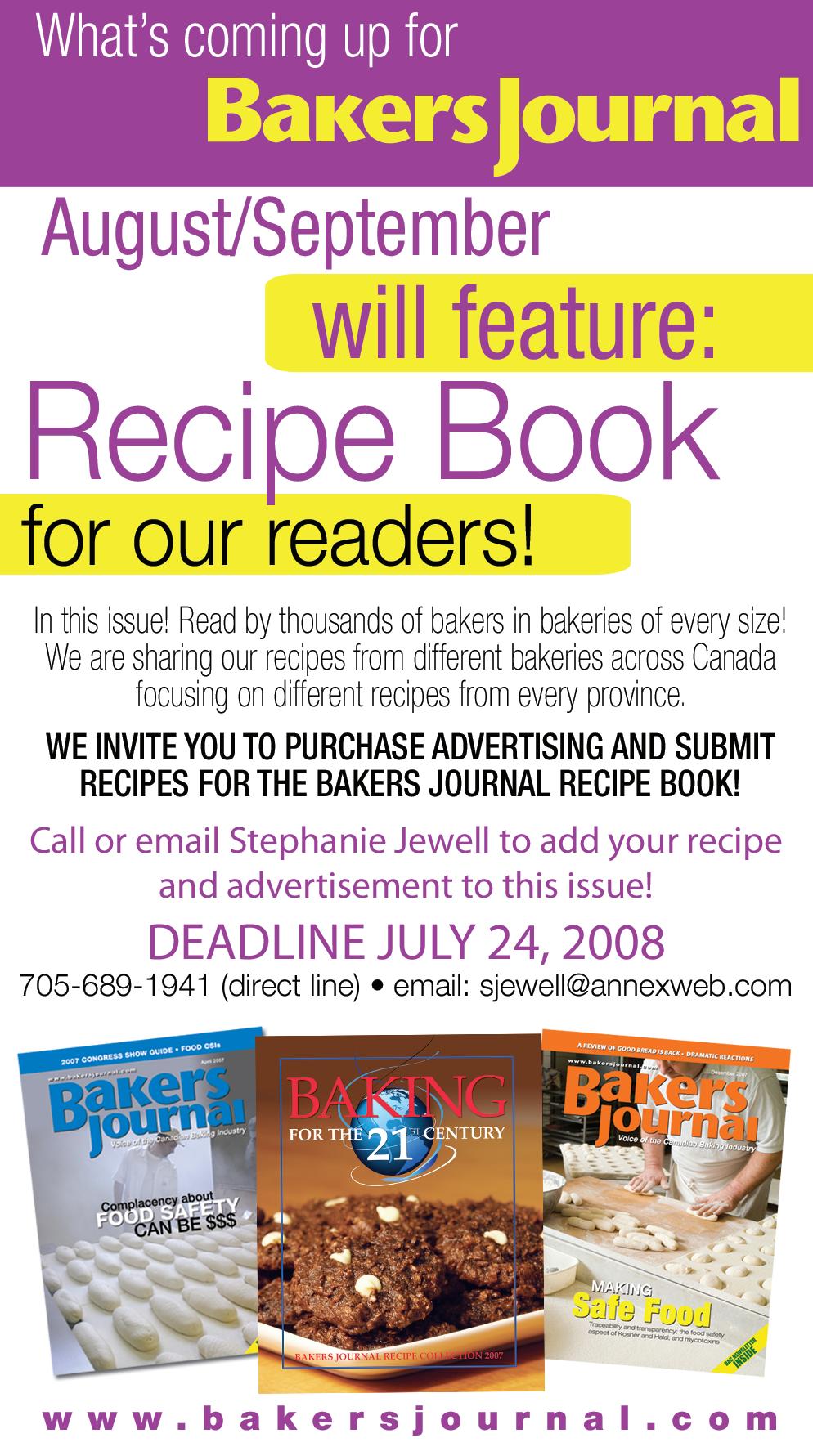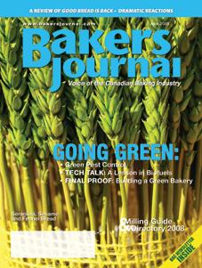 From time to time, we at Bakers Journal make our subscription list available to reputable companies and organizations whose products and services we believe may be of interest to you. If you do not want your name to be made available, contact our circulation department in any of the four ways listed above. No part of the editorial content of this publication may be reprinted without the publisher’s written permission. ©2008 Annex Publishing & Printing Inc. All rights reserved. Opinions expressed in this magazine are not necessarily those of the editor or the publisher. No liability is assumed for errors or omissions. All advertising is subject to the publisher’s approval. Such approval does not imply any endorsement of the products or services advertised. Publisher reserves the right to refuse advertising that does not meet the standards of the publication.