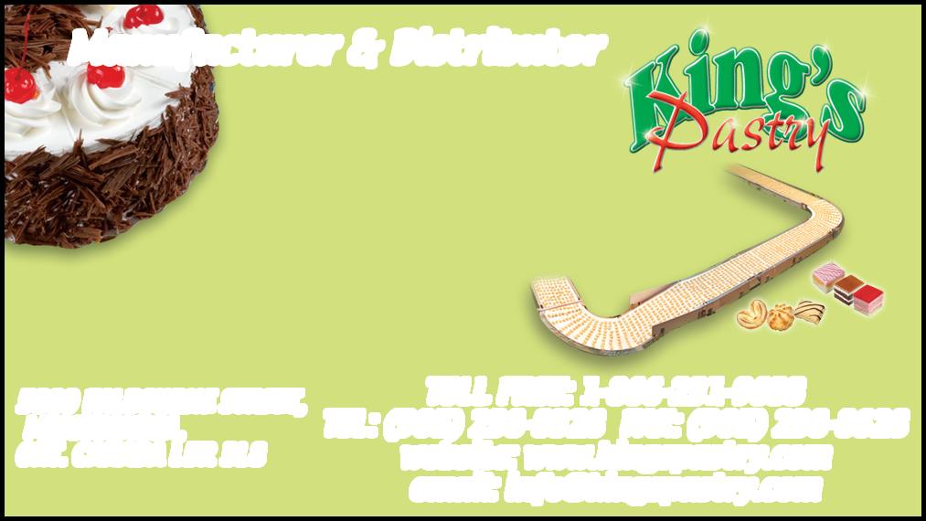 Products offered: Frozen baked pre-portioned cheesecakes, cakes, tortes and pies. Individual mousse, cheesecake and petit four. Deliveries: Nationwide in Canada, upstate New York, Pennsylvania, Washington, Arizona, Colorado, Texas and Georgia. Direct delivery by local branches via distributors in other areas.