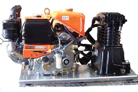 Ideal for running blowguns, impact guns and other air tools, the heavy-duty 15CFM diesel air compressor produces an air flow volume of 15 cfm at 150 psi. With all CNC-machined parts, the powdercoated Schulz air compressor operates at a very low 1,000 r.p.m.