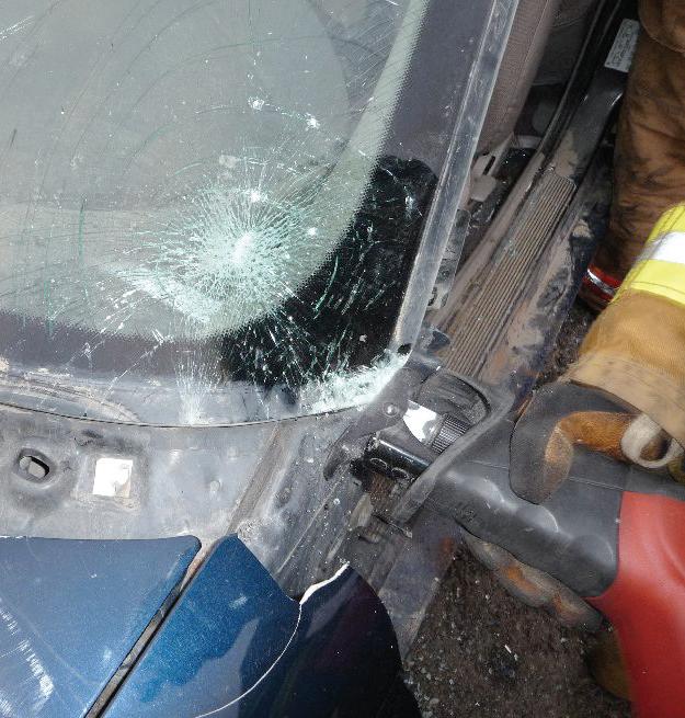 Photo 7: To cut A-pillars, make cut with hydraulic cutters at top corners of windshield.