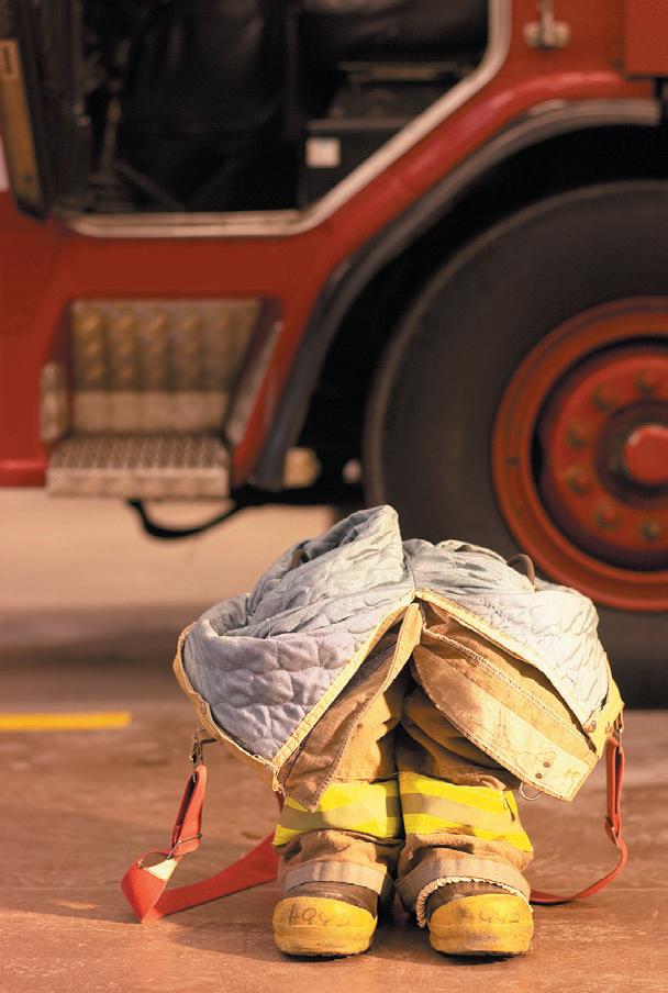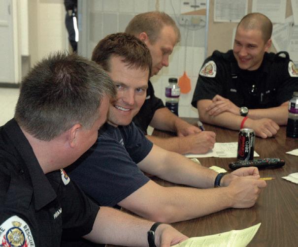 fire-based EMS in action. Lane and Crow remained on EMS duty while other paramedics changed into bunker gear in a nearby parking lot. Afterwards, crews in bunker pants waited in the hospital with patients they had transported by ambulance – prime examples of the flawless transfer of fire and EMS responsibilities and duties among Lethbridge’s dual-trained firefighters/paramedics.