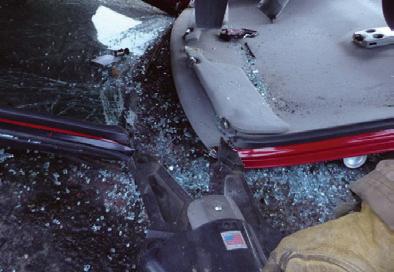 One other issue that has not had much attention is the cutting of laminated windshield glass. Most rescuers, including me, haven’t put much thought into the hazards of cutting laminated glass. My curiosity about this stems from something I witnessed a couple of years ago when I was judging an extrication challenge on the coast of British Columbia. The challenge was running a bit late and it was just before dusk. The team competing was halfway into its scenario when the call was made to completely remove the roof for a straight up-and-out patient egress. All pillars of the roof were cut from back to front and then one continuous cut was made from A-pillar to A-pillar, including the laminated windshield glass. The roof was then moved to the debris pile about six metres away. The process took a respectable time of about five minutes. At all T.E.R.C.-sanctioned extrication challenges, it is mandatory that all rescuers, including the live patient, wear an N95 dust mask while removing glass. These personal protective barriers were in place at the time for the competing team. I happened to step back from the action circle by about nine metres and was facing into the sun. What I saw was a real eye opener. Everywhere I looked, for at least a 15-square-metre radius, were fine particles of glass dust that would not dissipate. I moved around the working area and every time I looked into the sun I could see the fine dust; it even extended