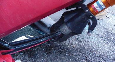 Give this a try. Break and remove the roof’s rear-window glass. Insert a hydraulic spreader in the centre of the rear-window opening – one tip of the spreader must be in contact with the edge of the roof in the centre; the other tip can spread down on the rear trunk deck or the top of the rear seat. Fully extend the spreader arms. This will collapse the trunk deck and create a tenting effect in the centre of the roof, producing a large enough hole through which a rescuer can enter and a patient can be safely removed. (See photo 1.)